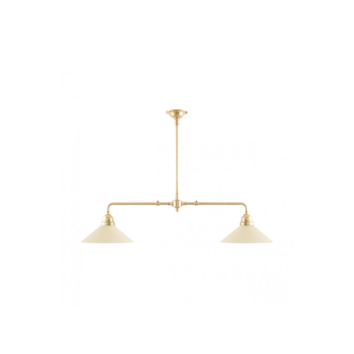 Utförandet i polerad mässing ger lampan en varm och reflekterande yta som förstärker det klassiska uttrycket. Ljuset riktas nedåt och skapar en tydlig arbetszon utan att dominera rummet.