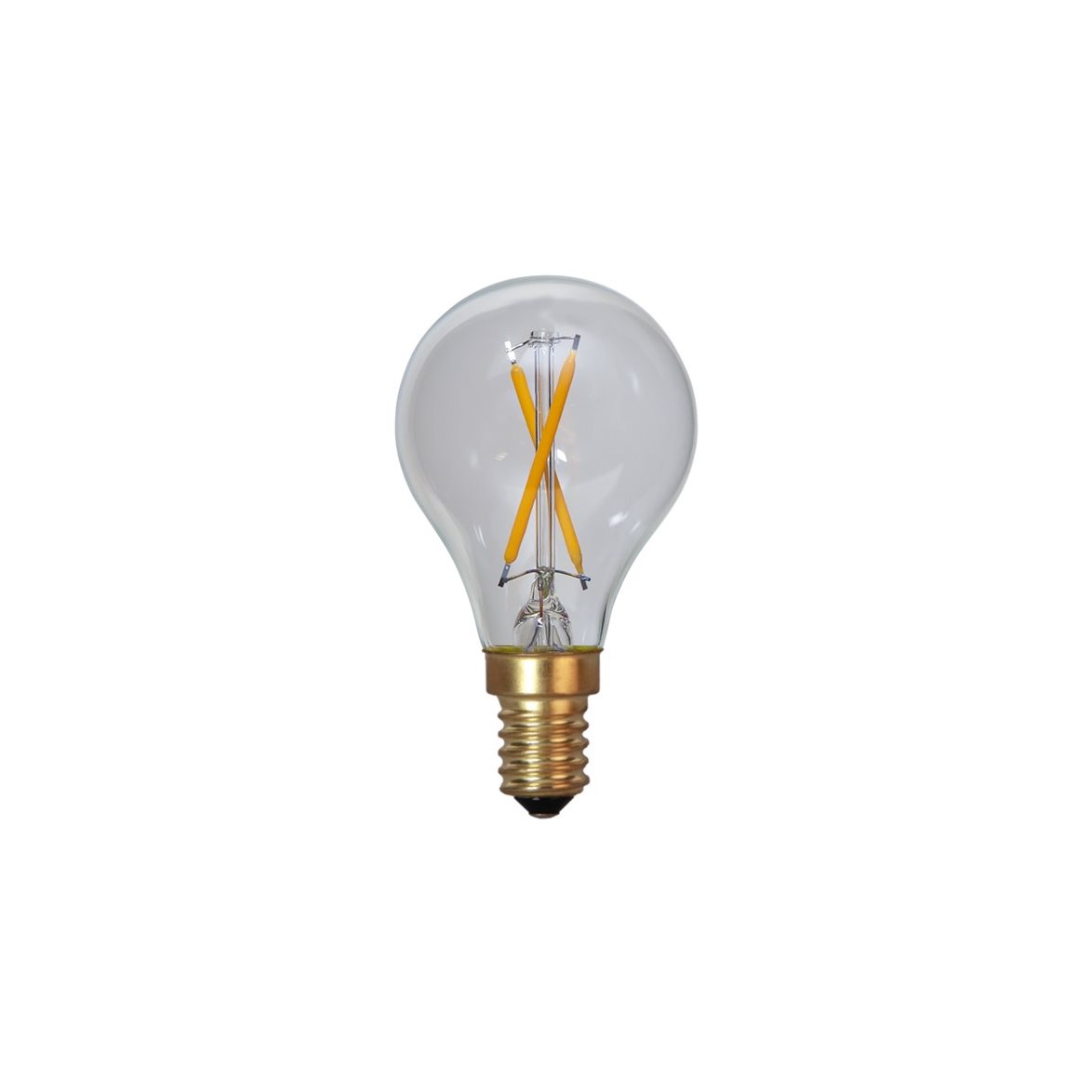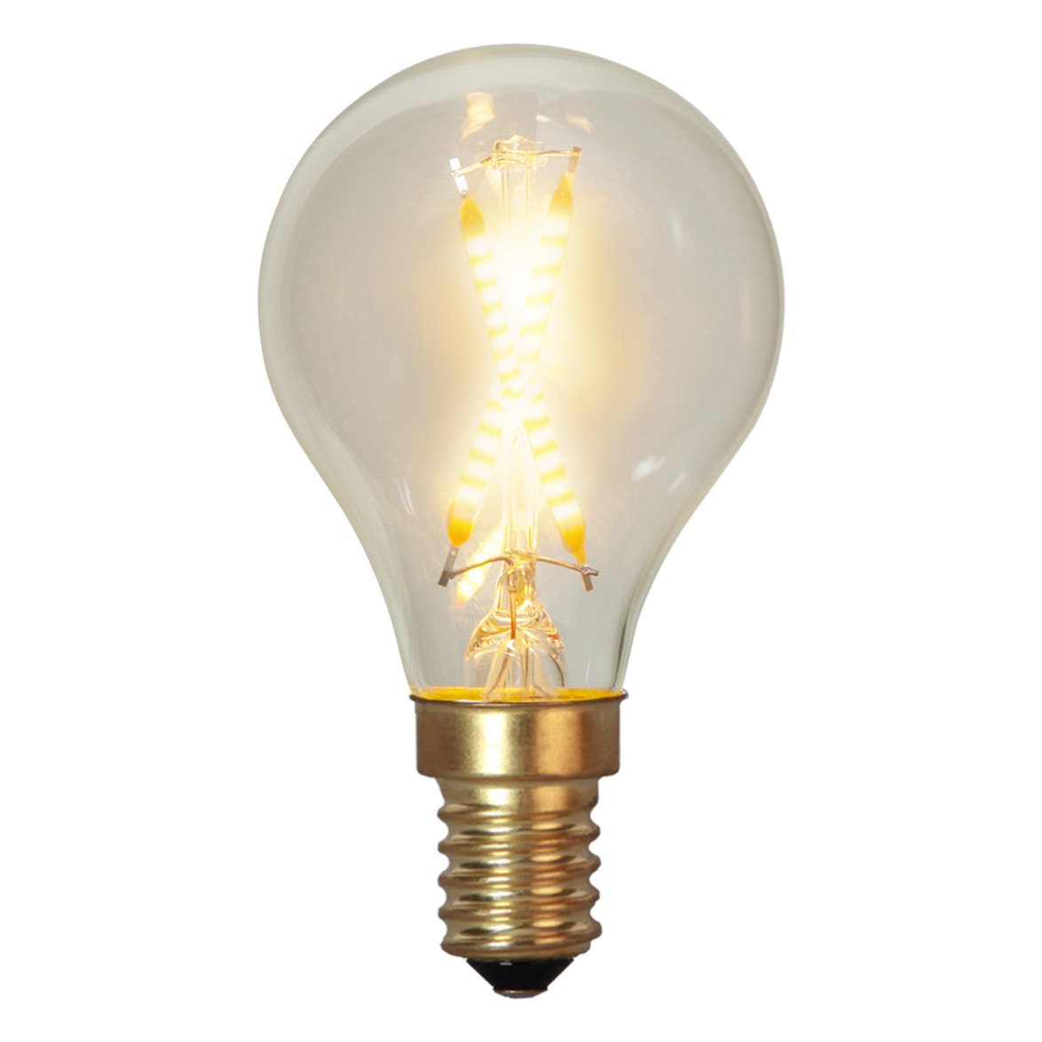 Dekorativ klotformad ljuskälla med LED som har mjukt sken och mycket lågt lumen. E14-sockel och färgtemperaturen är 2100K. 2 filament i kors ger ett mysigt och varmt sken!